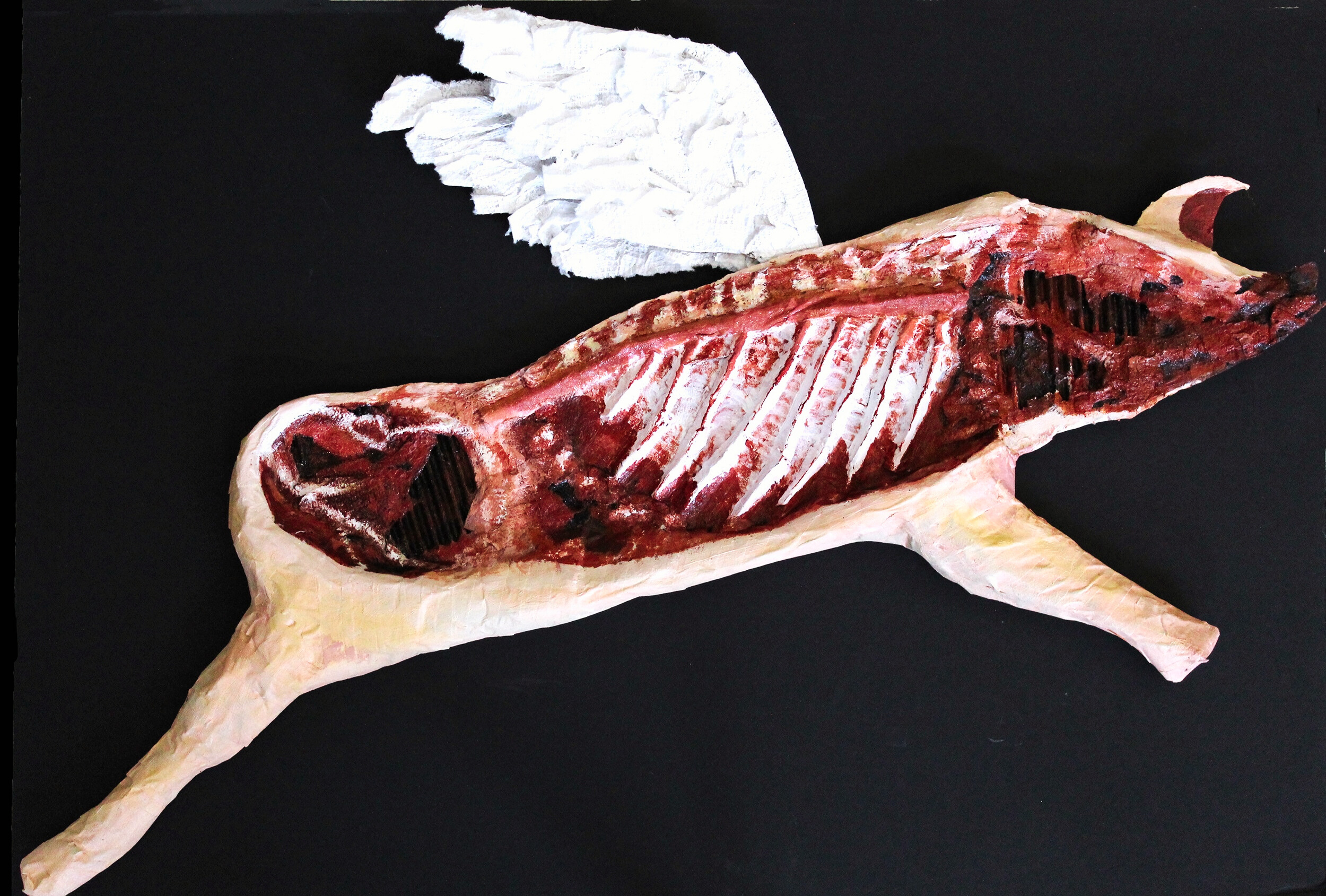 Butchered PigCardboard, paper napkins, tape, acrylic paint