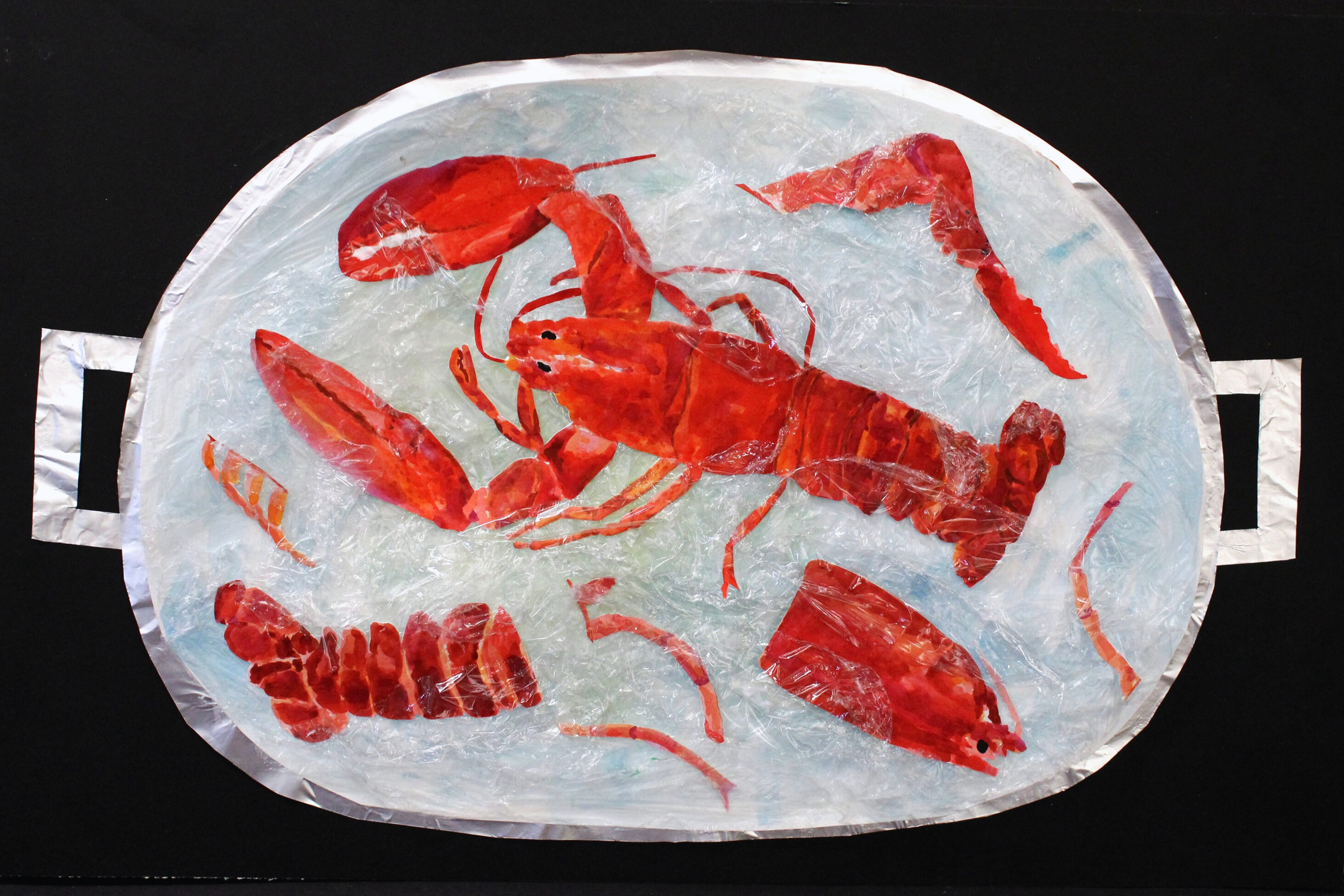 Lobster BoilingTinfoil, plastic bag, watercolor, cardboard