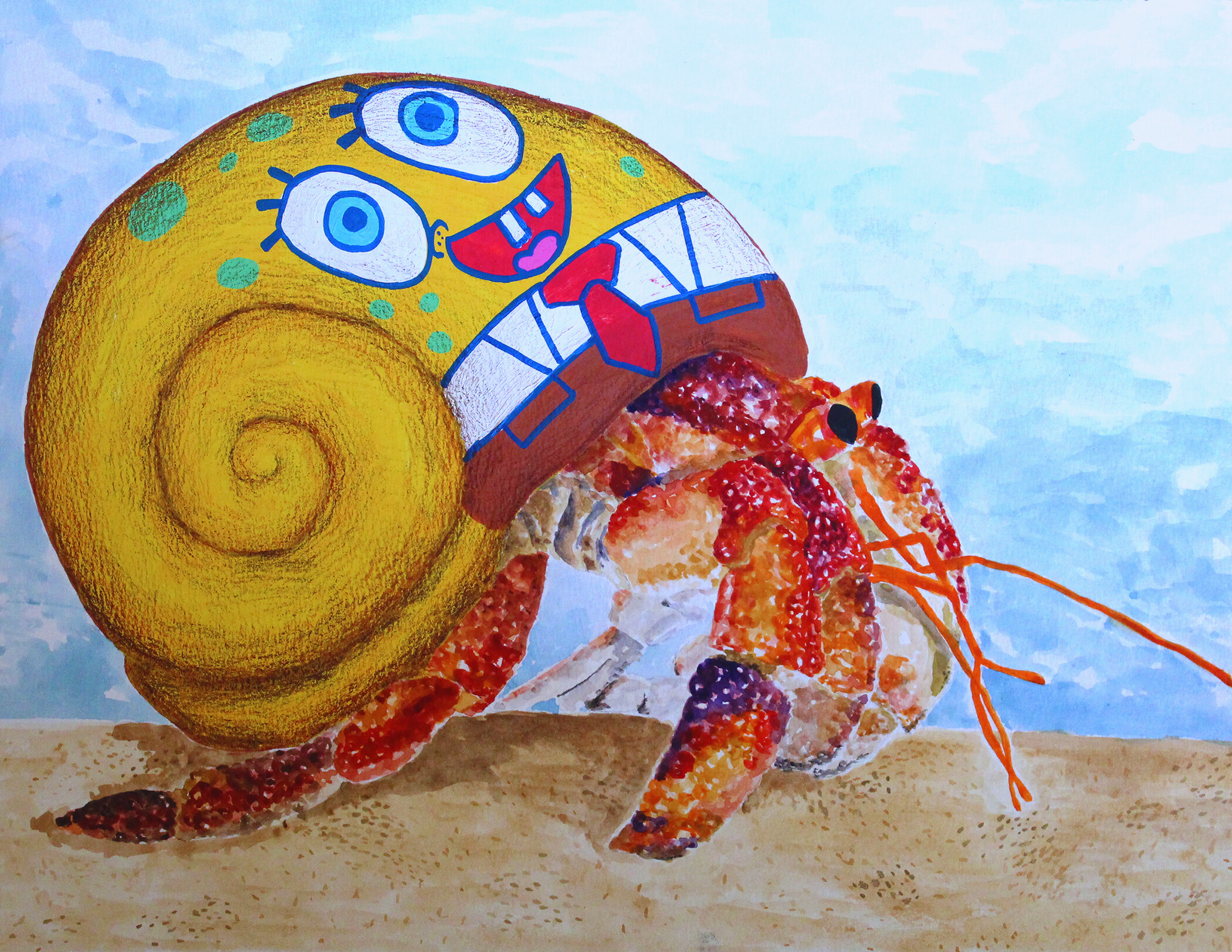 Painted Hermit CrabWatercolor, paint marker, colored pencil