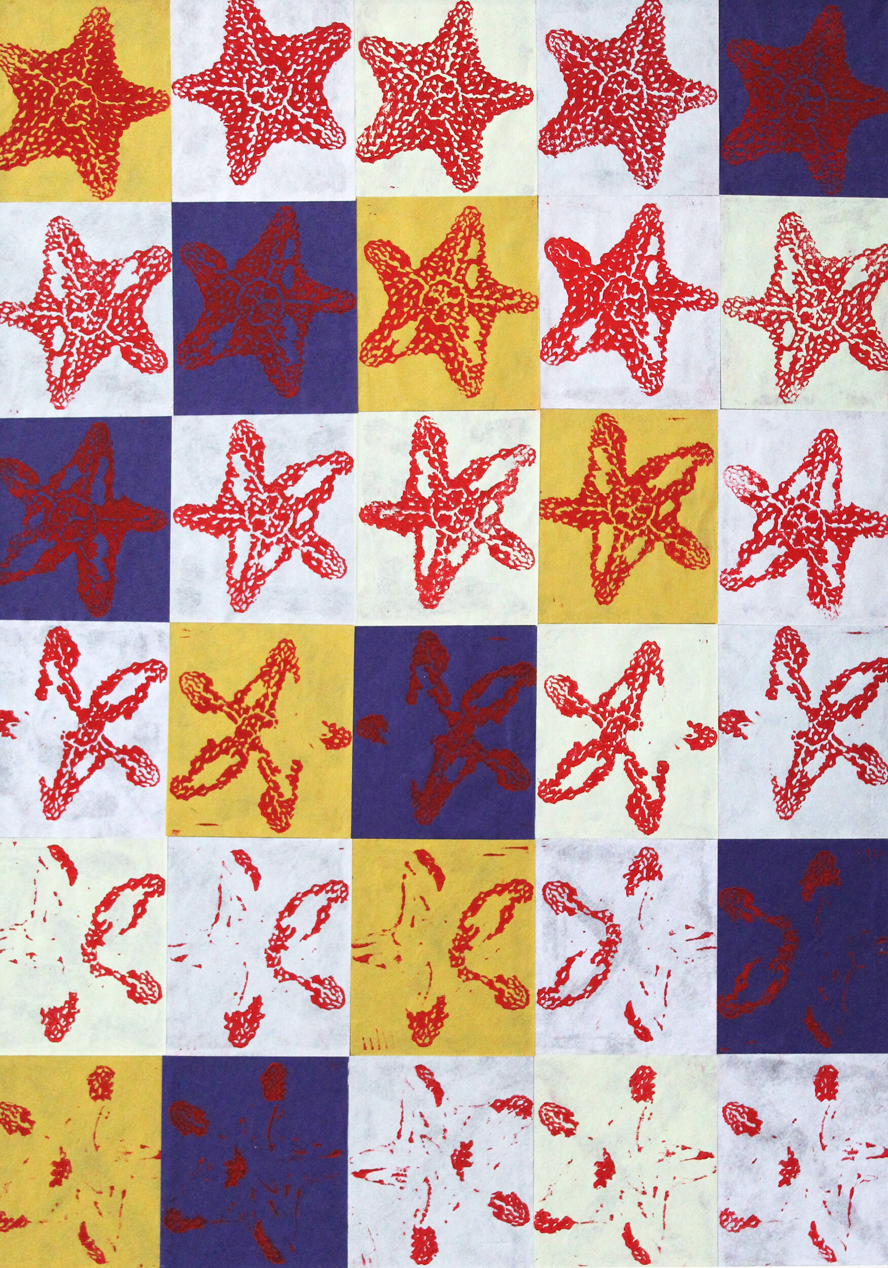 Sea Star Wasting SyndromeLinocut stamp, printing ink
